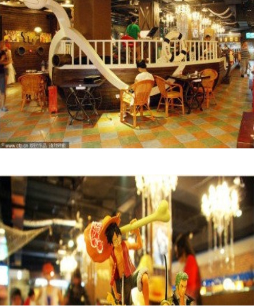 這家位于廈門的海賊王主題餐廳,有著近20米長的“黃金梅列號”成為最大特色。顧客可以坐在“船”內(nèi)品嘗店內(nèi)主打的烤肉。每天店內(nèi)都會安排cosplay表演,顧客可以與coser們合影留念,同時6也可以登上船頭與歌手們飆歌一曲。