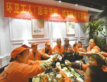 “謝幺爸,你不是經常吼好想吃頓火鍋得嘛,今天可以敞開肚皮整哦!”“今天就算我們提前團年啦!來大伙一起喝一杯!180名環衛工人一邊燙著火鍋,一邊擺著龍門陣。原來,這些被邀請來的環衛工們,全部為轄區一線的環衛工,平均年齡50多歲。50多歲的李大姐干環衛工已有八年時間,她說,今天的火鍋不僅味道巴適口感舒服,更覺得心里暖和。吳大姐接過話來,“你看這么漂亮的店堂還專門貼上了標語:“最辛苦的人——環衛工人”;“環衛工人!您辛苦啦,城市因你而美麗”真讓人感覺貼心、暖心……