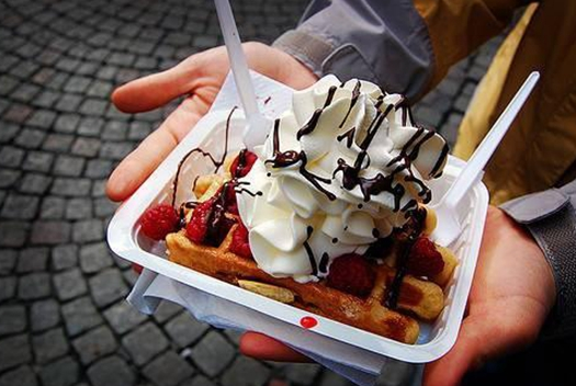 Amerikaner的華夫餅冰淇淋是Vaffelbageriet冰淇淋店的一大招牌。它是由四勺糖霜,搭配生奶油和巧克力酥皮泡芙制作而成。絕對是能滿足顧客的絕妙味覺盛宴。