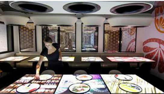 烏克蘭一家公司開發(fā)了一種叫做交互式餐廳的技術,客人點餐變得完全自助。餐廳把菜品、飲料的照片、具體信息陳列在一個防水觸屏桌上,顧客只需要在電子菜單上下單就可以將信息網傳給廚房。不但可以節(jié)約服務員的本錢,還免掉了詢問菜肴情況的繁瑣程序,在這個桌面上可以輕松完成點餐的工作。