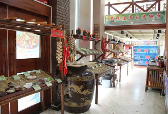 美味故事總共有110道菜品,除成本高、制作時(shí)間長(zhǎng)的菜品以外,大部分菜都可以在自選超市里找到。超市的全名叫“美味佳肴自選超市”,和普通的明檔不同,自選超市里并不烹飪菜品,只是將做好的樣品擺放在貨架上,標(biāo)注價(jià)格、制作流程,讓顧客在這個(gè)沒(méi)有菜單的餐廳快速地點(diǎn)菜。
