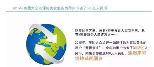 2月2日,美團(tuán)大眾點(diǎn)評(píng)發(fā)布《2015年國(guó)人餐飲消費(fèi)報(bào)告》,稱2015年,美團(tuán)、大眾點(diǎn)評(píng)幫助消費(fèi)者在餐飲消費(fèi)方面節(jié)省了580億元。