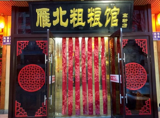 掌柜張耀東將這家叫做“雁北粗糧館”的店鋪收拾得很有家的味道,前門大紅的剪紙、黑底黃字的門頭,還有仿若飄帶的門簾,店內原木的裝飾風格,再配上一道道美味佳肴,給人一種心情舒適的感覺。