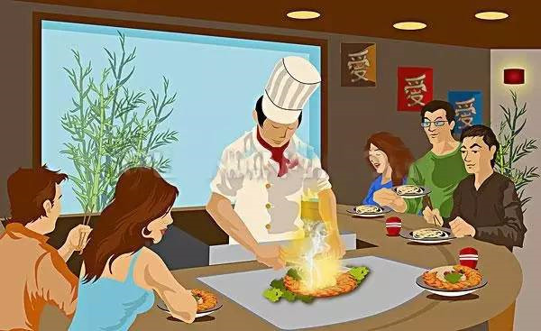 餐廳娛樂化這很常見,如吃飯有人彈奏音樂,堂食有鮑魚公主服務之類的。但是讓廚師在顧客面前表演烹飪,并且快速提高翻臺率的方法,你知道嗎?