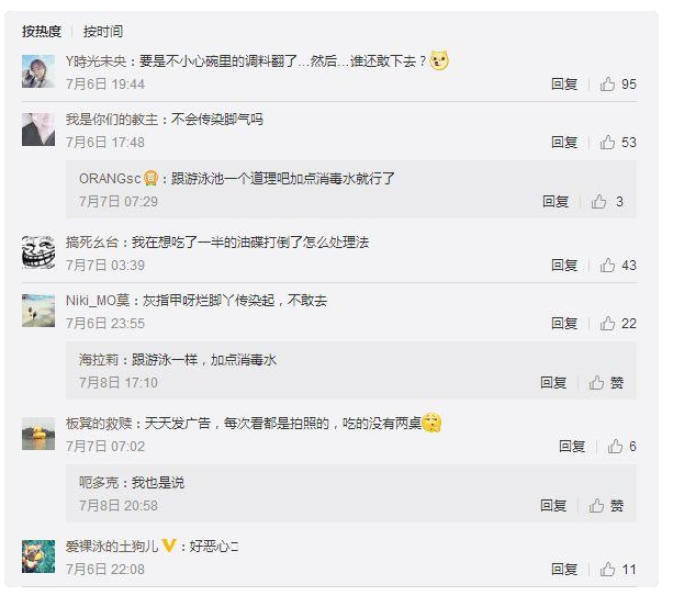 翻看眾多網(wǎng)友的評論,盡管人們都覺得新奇,但是大部分網(wǎng)友都把關(guān)注點(diǎn)放在了“不干凈”“腳氣足癬傳染病”“油漬”等問題上。